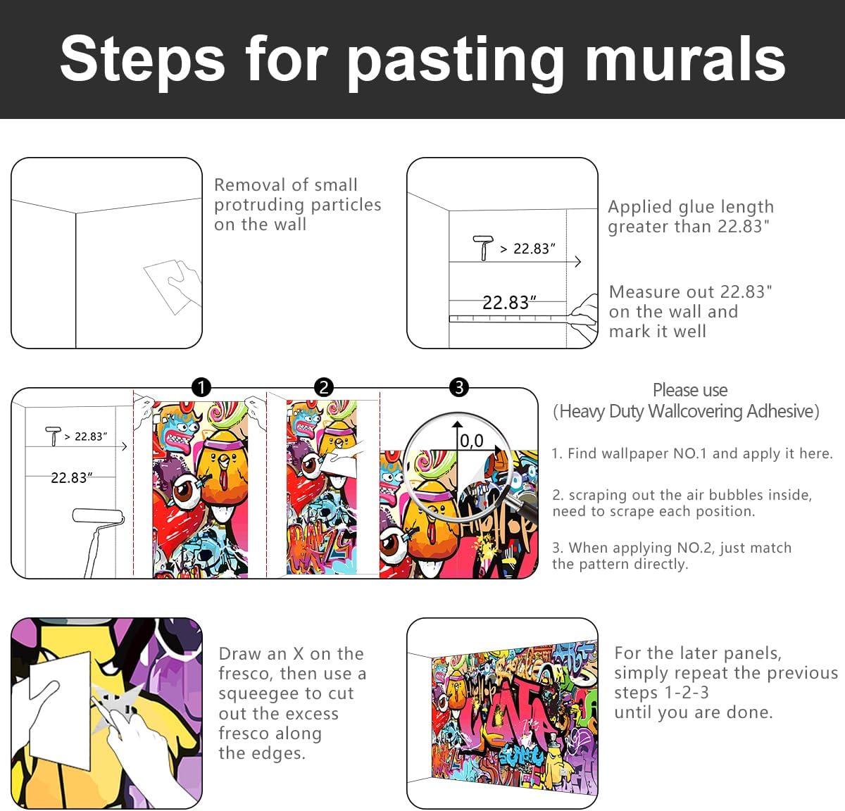 - 💕This mural installation does not need to overlap, just match in order according to the marked order below the panel.