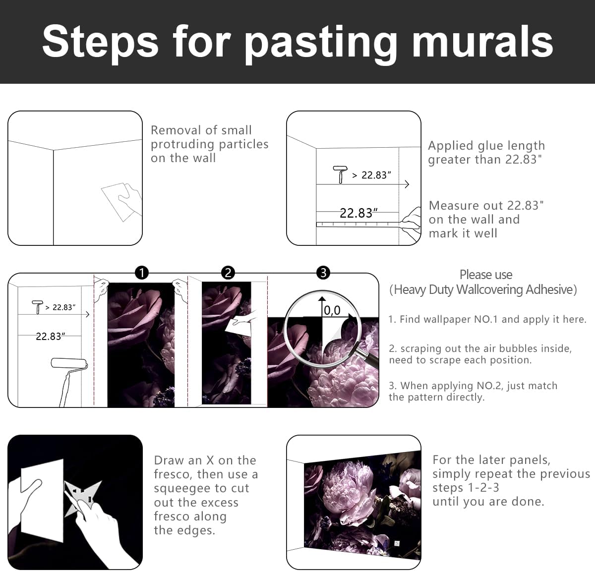 - 💕Wallpaper installation can refer to our main picture, the package will also be placed inside the installation instructions.