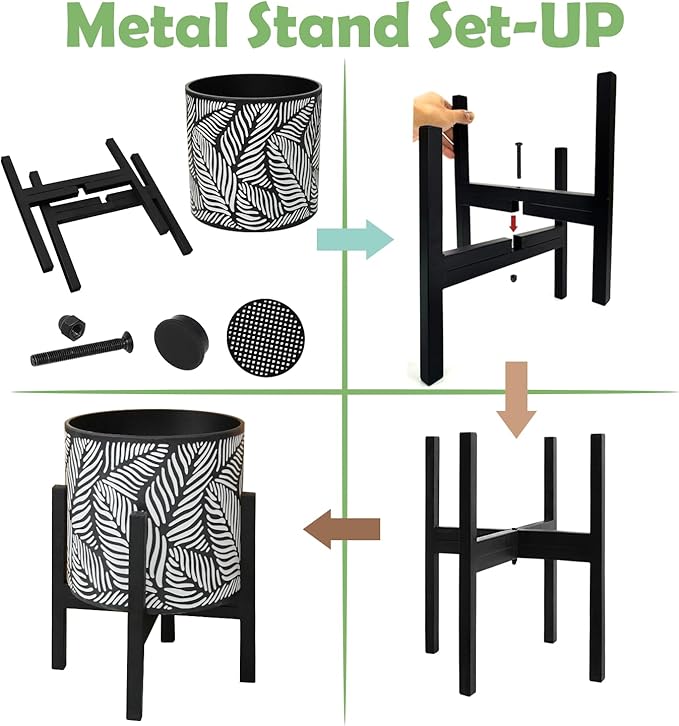 - TROPICAL AMBIANCE: The palm leaf print adorning these flowerpots exudes a sense of tropical charm, instantly elevating the ambiance of your living spaces. Create a serene garden sanctuary on your patio, a lush indoor oasis in your living room, or a tropical corner on your balcony with these stunning pots and stands.