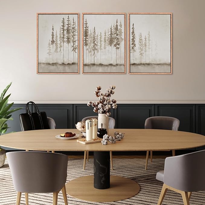 - 【Ideal Decoration Option】This forest wall decor featuring mist-shrouded trees resembling an ink and wash painting is an ideal decoration option. It can be hung in various spaces such as living rooms, bedrooms, bathrooms, hallways, kitchens, dining rooms, and offices, adding a touch of nature and tranquility to any room.