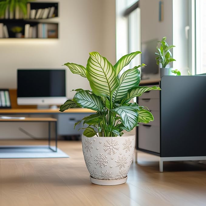 - Stylish Appearance: Our ceramic planter has a white main colour and a beautiful embossed snowflakes pattern on the surface, elegant appearance making it ideal for home decor, garden decor and office decor