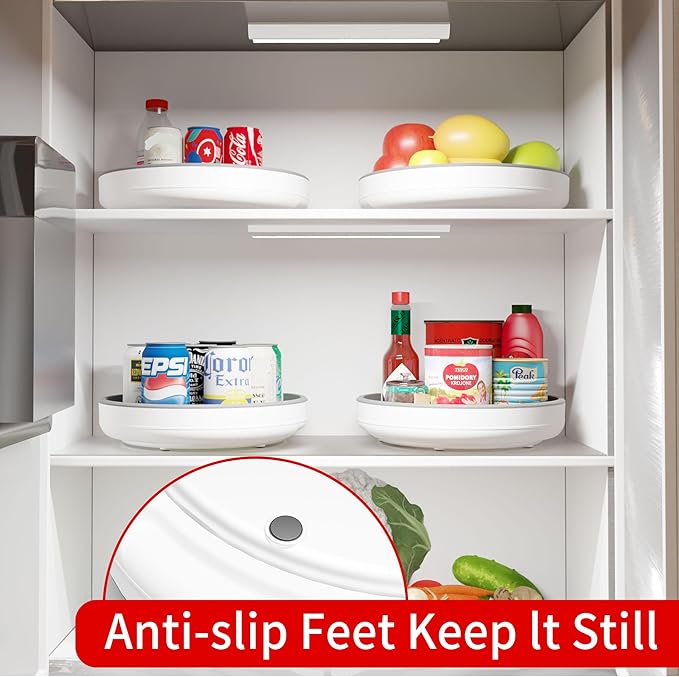 - Package Include: 1 Pack 10 Inch lazy susan organizer. Easily rotating plastic lazy susan turntable for pantry organizers and storage includes non-skid beaded surfaces with anti-slip base feet