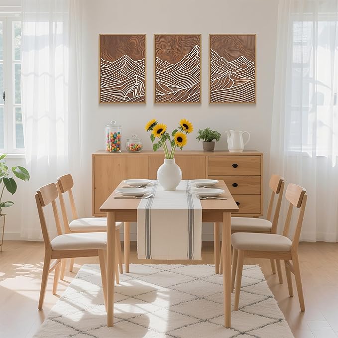 - 【Country Line Style Wall Art】The decorative paintings feature a unique style design with dark background as the primary tones. The most distinctive feature of this product is the embellishment of the imitation wood-carved mountains with white lines